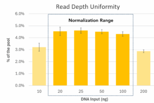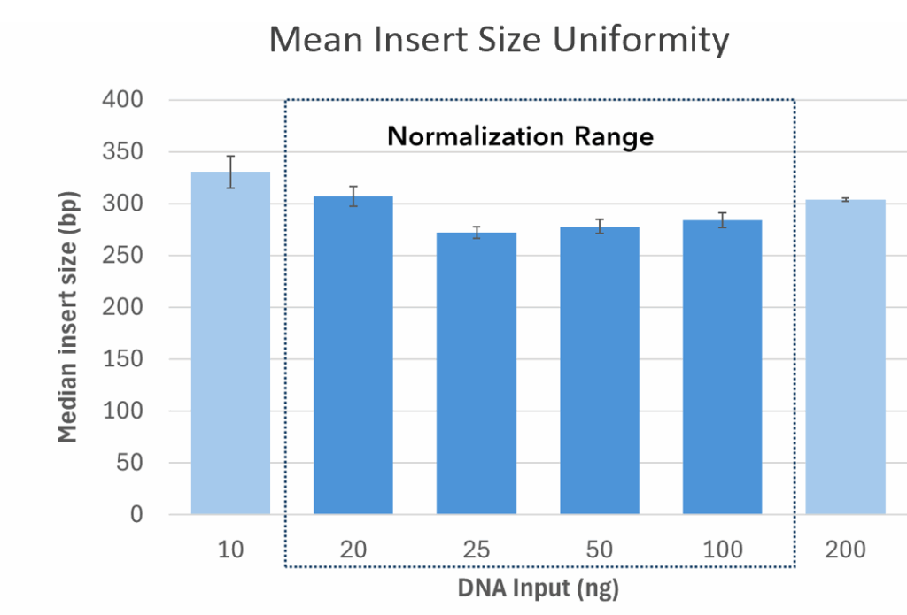 Auto-normalization of mean insert size and read depth eliminates the need to individually quantify and dilute samples to ensure uniform coverage for all your critical samples.